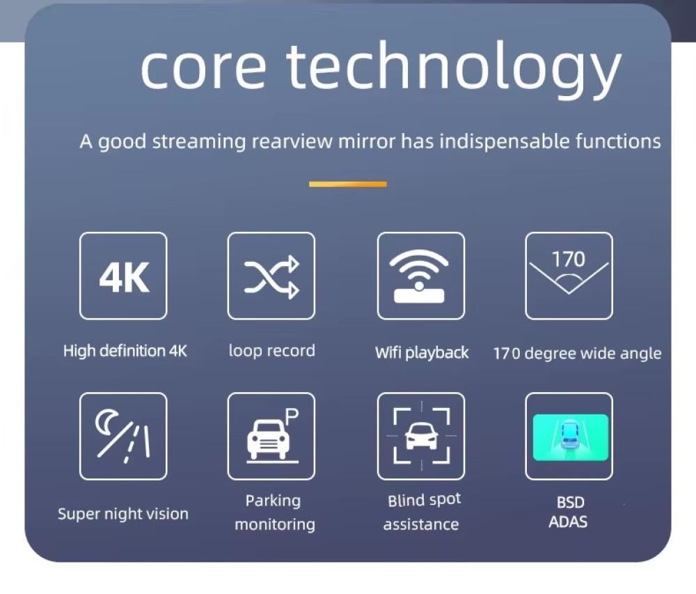 4K 4 Channel Recording 360 Degrees Dash Cam 12" for Car Touch Screen